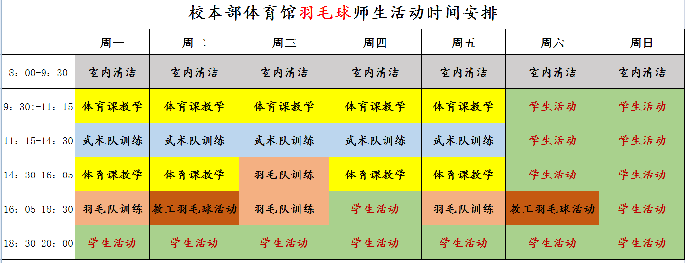 校本部体育馆开放时间通知